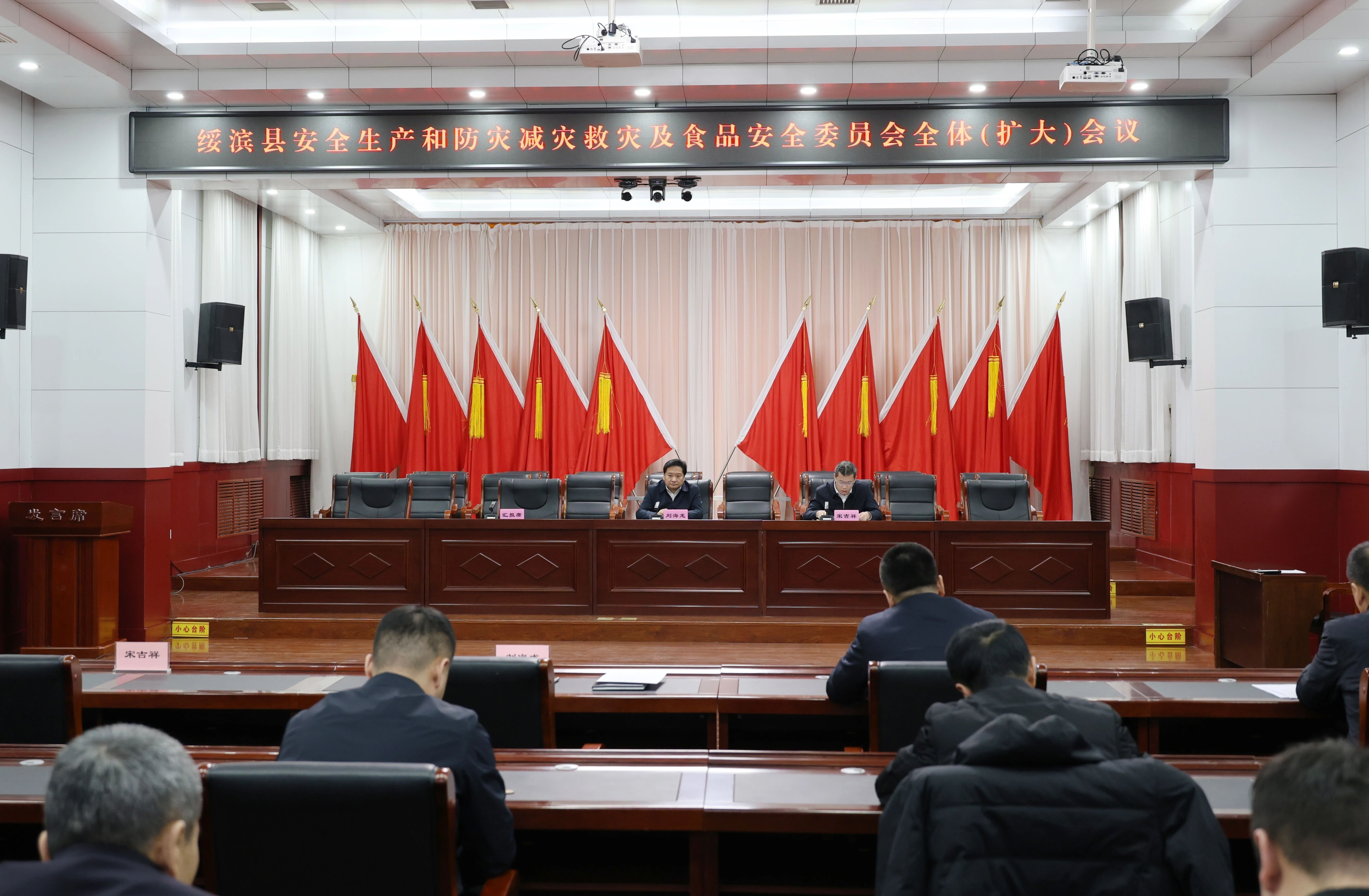 12月26日,我县召开安全生产和防灾减灾救灾及食品安全委员会全体(扩大)会议。县委副书记、县长刘海龙,县领导宋吉祥、于海峰、郑和斌及各乡镇、相关部门负责同志参加会议。宋吉祥主持会议。