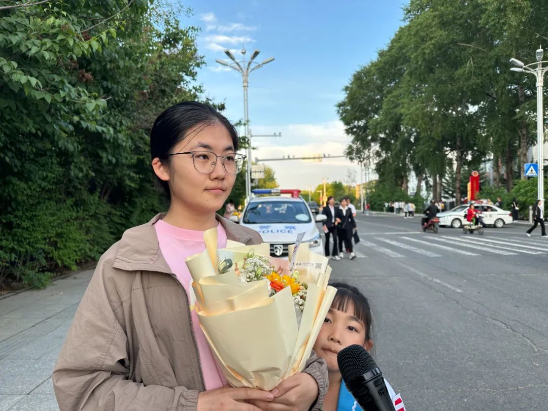 当考生们面带笑容陆续走出考场,现场瞬间沸腾起来。欢呼声、掌声此起彼伏,家长们高举手机记录下这一珍贵时刻,许多人手中拿着向日葵及鲜花,祝福考生“一举夺魁”“前程似锦”。