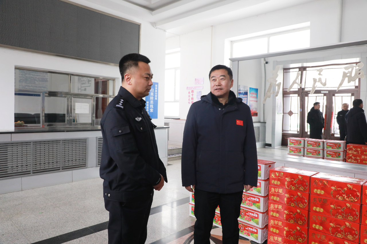 除夕前夕,县委书记何佳到县委保密和机要局、县公安局、县边境管理大队、县消防救援大队、县自来水厂、永胜烟花爆竹有限公司、县第三加油站,看望慰问春节期间坚守岗位的一线干部职工,并实地检查春节期间安全生产工作。副县长、县公安局局长于海峰参加慰问。
