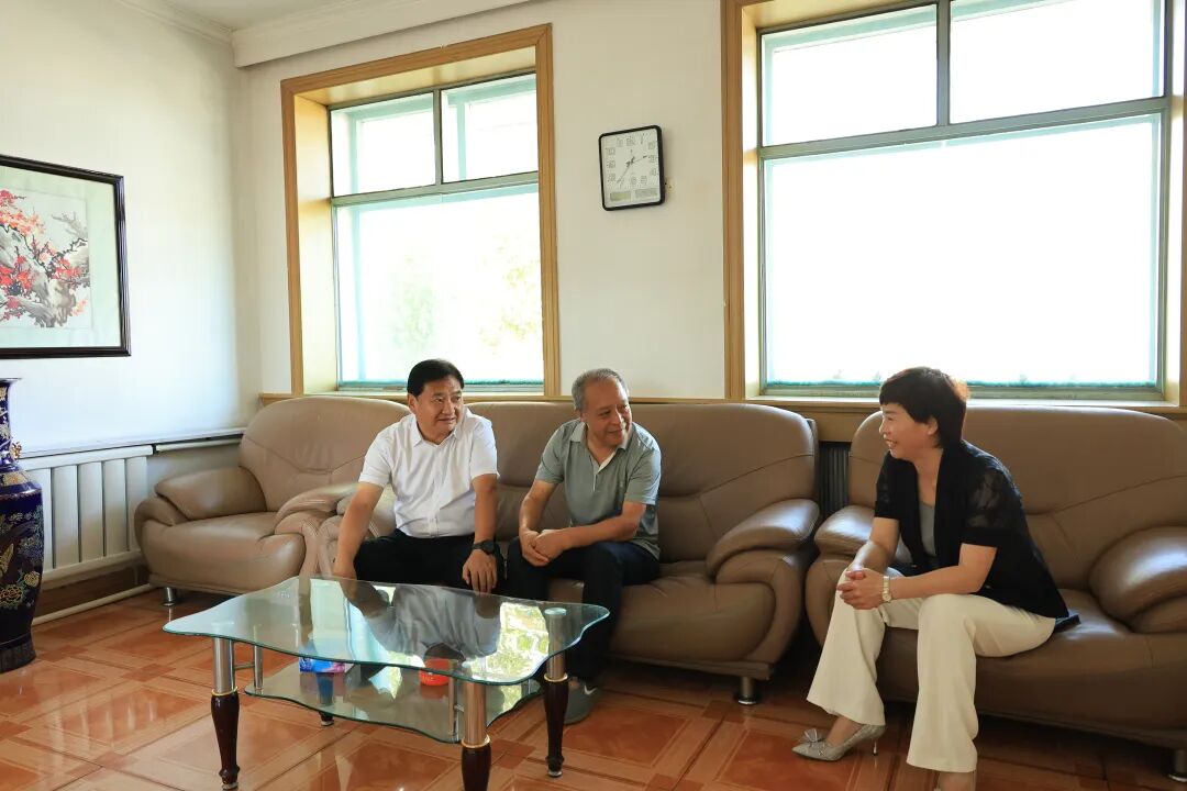 在退休老教师苏连海家中,刘海龙与他促膝谈心,询问他的身体状况与生活情况。他说,老教师是教育事业的宝贵财富,为县域教育发展作出了重要贡献,希望他保重身体、安享晚年,同时鼓励老教师继续发挥余热,为新时代教育工作建言献策。
