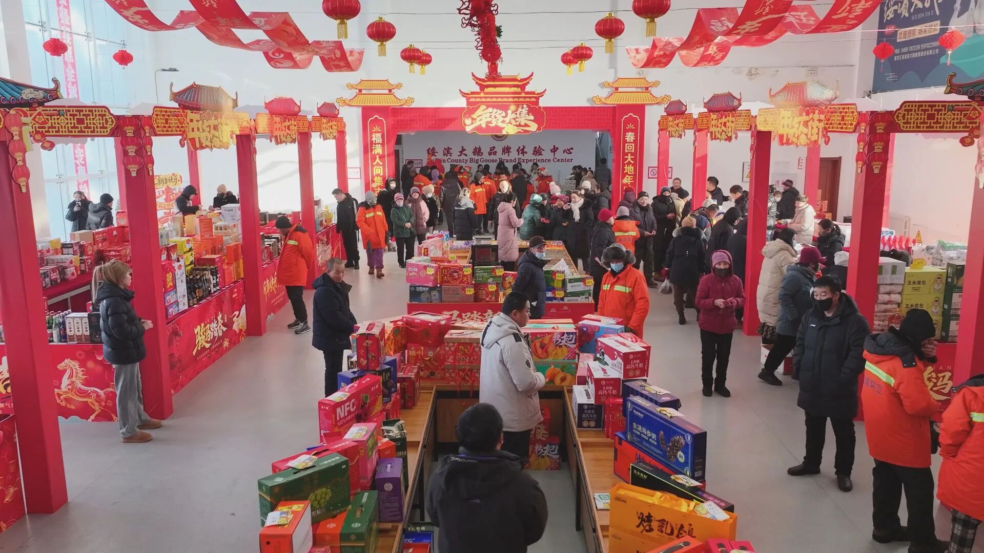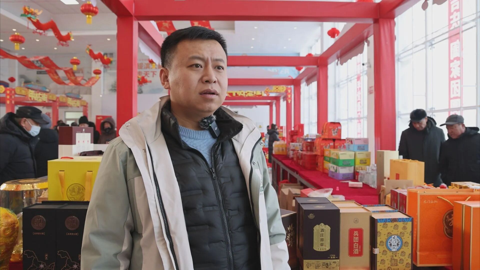 龙门福地酒业运营中心主任孟庆翔:我们龙门福地酒业为了本次年货大集,提前两个月就开始备货。今天一开市,我们的新年礼盒儿就销售了十几箱儿,我也在大集上买了一些年货,沾沾年味儿。在这里,也祝愿父老乡亲们阖家欢乐,万事如意。