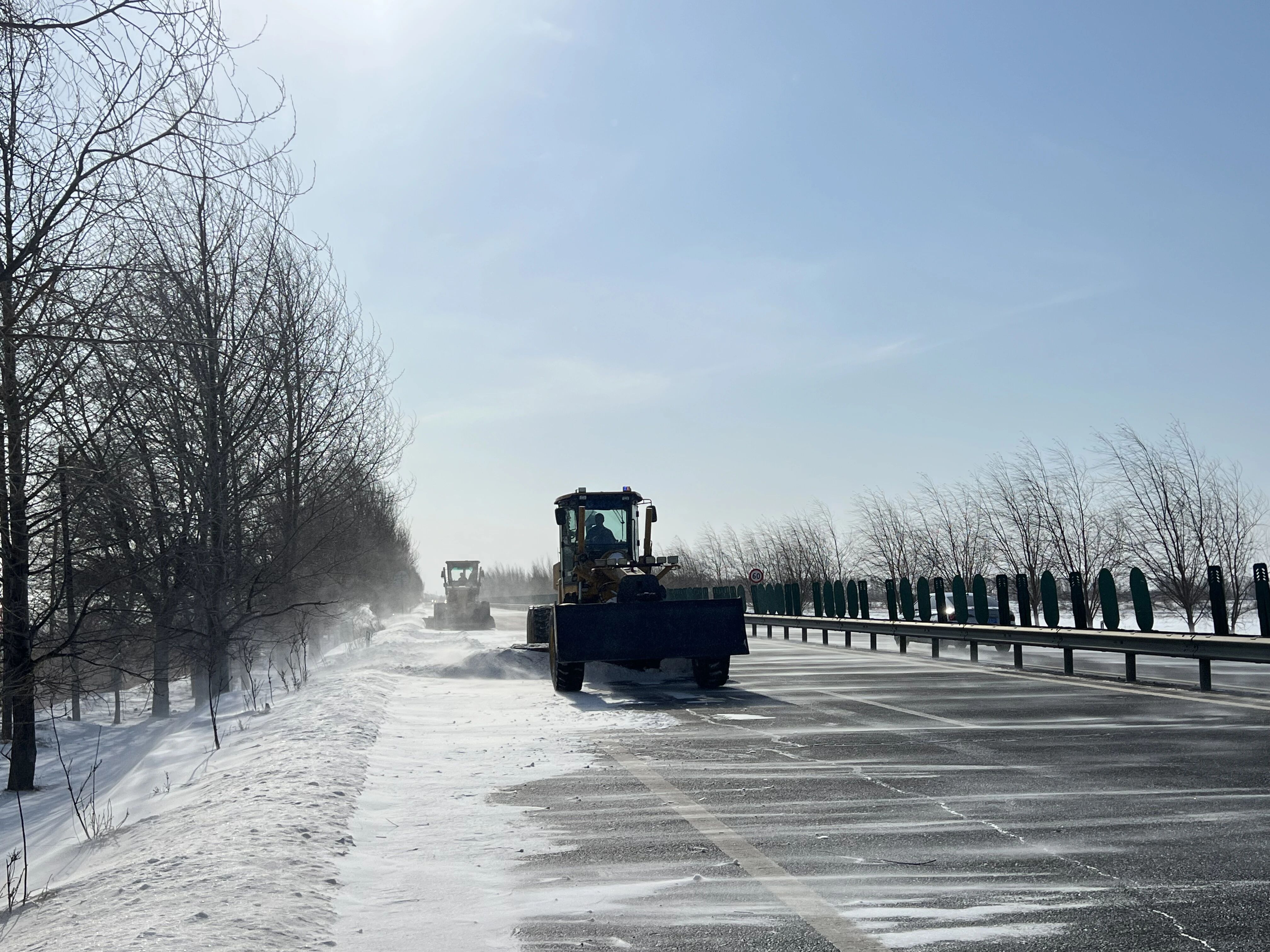 作业现场,清雪机械轰鸣作业,按照“机械为主、人工为辅、重点攻坚、循环清理”的原则,对主干道积雪进行全面推扫、碾压,及时清理风吹积雪堆和路面薄冰,实现随下随清、雪停路净,不留安全隐患。