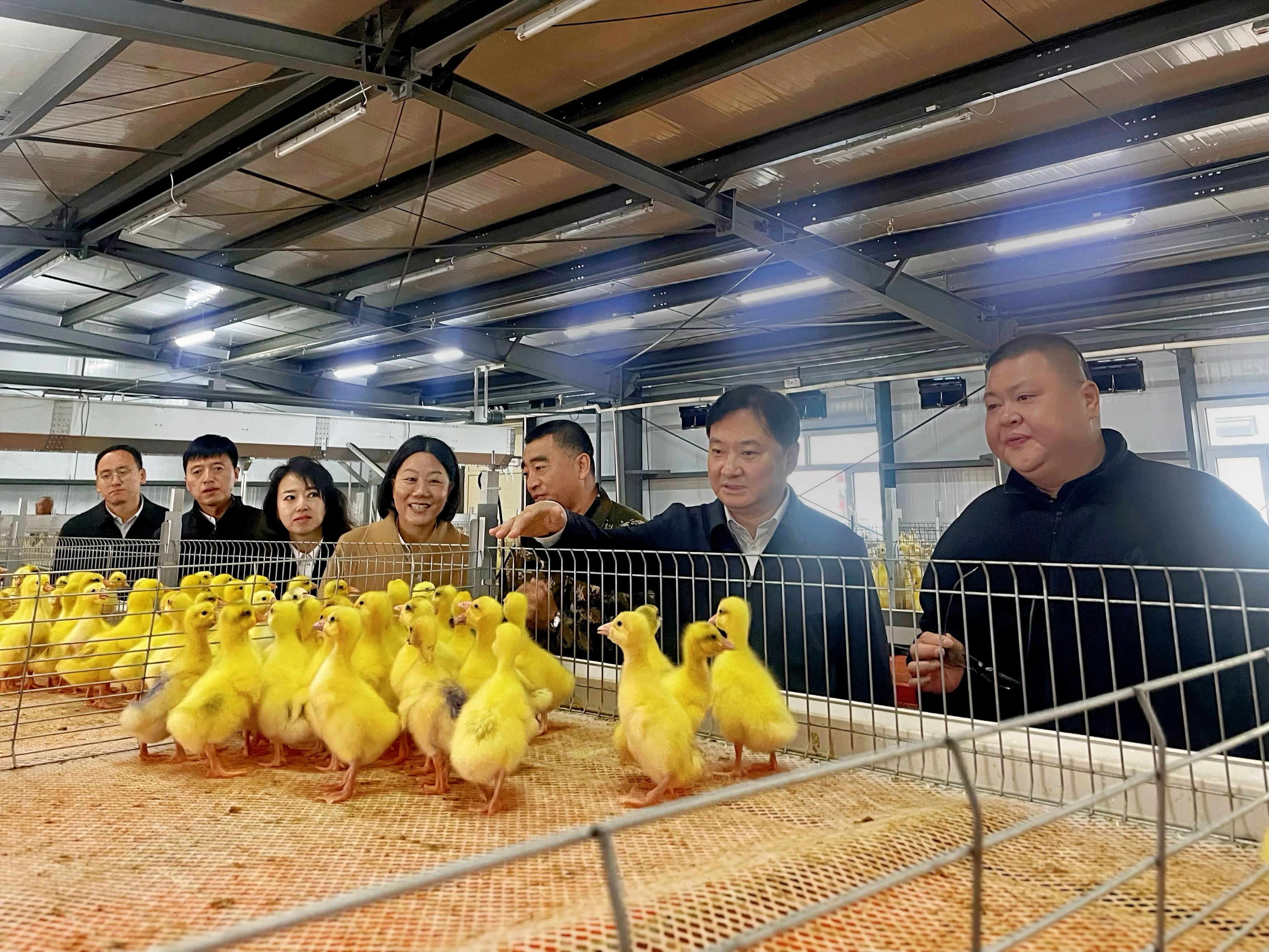 签约仪式后,政企双方赴绥滨县孵化育雏基地及鹅绒洗选项目规划选址实地调研。在孵化育雏基地,郭晓详细了解鹅苗标准化繁育流程、疫病防控体系及规模化养殖成果,对科学化、标准化的养殖管理模式给予充分肯定。在项目规划选址现场,双方围绕用地规划、基础设施配套、施工进度等关键环节深入交流,结合项目技术需求优化设计方案,推动项目从签约向实施高效衔接。