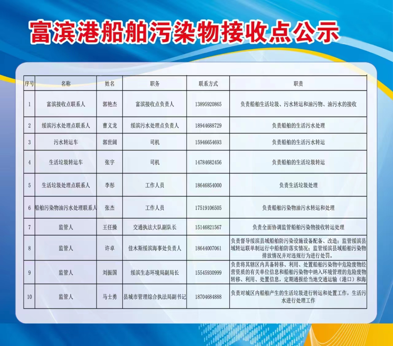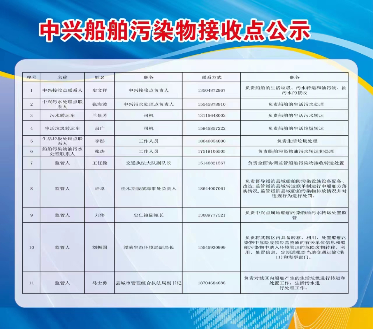 关于富滨港船舶污染物接收点、中兴船舶污染物接收点的公示