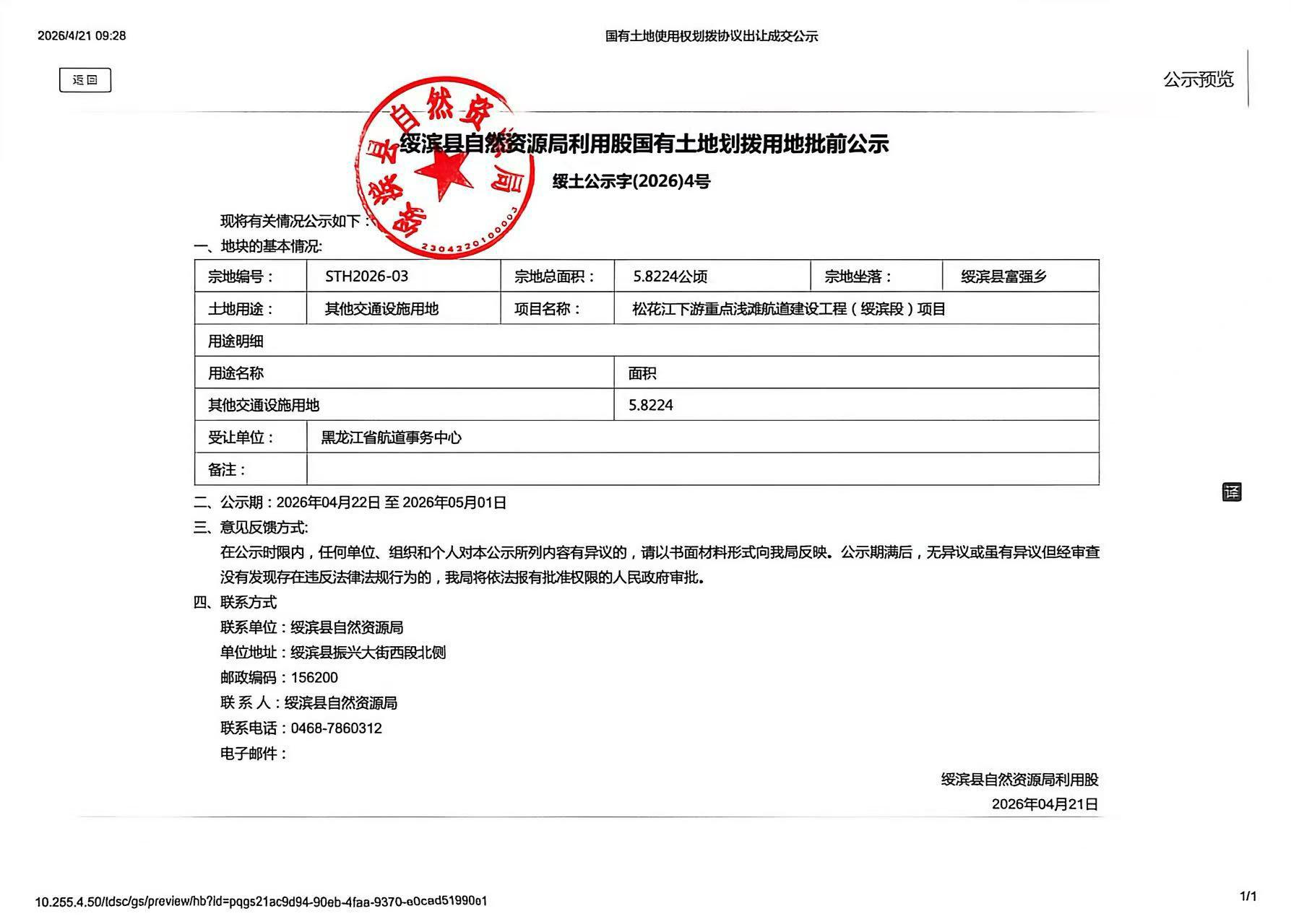 信息来源:绥滨县自然资源局 发布日期:2026-04-21 11:03