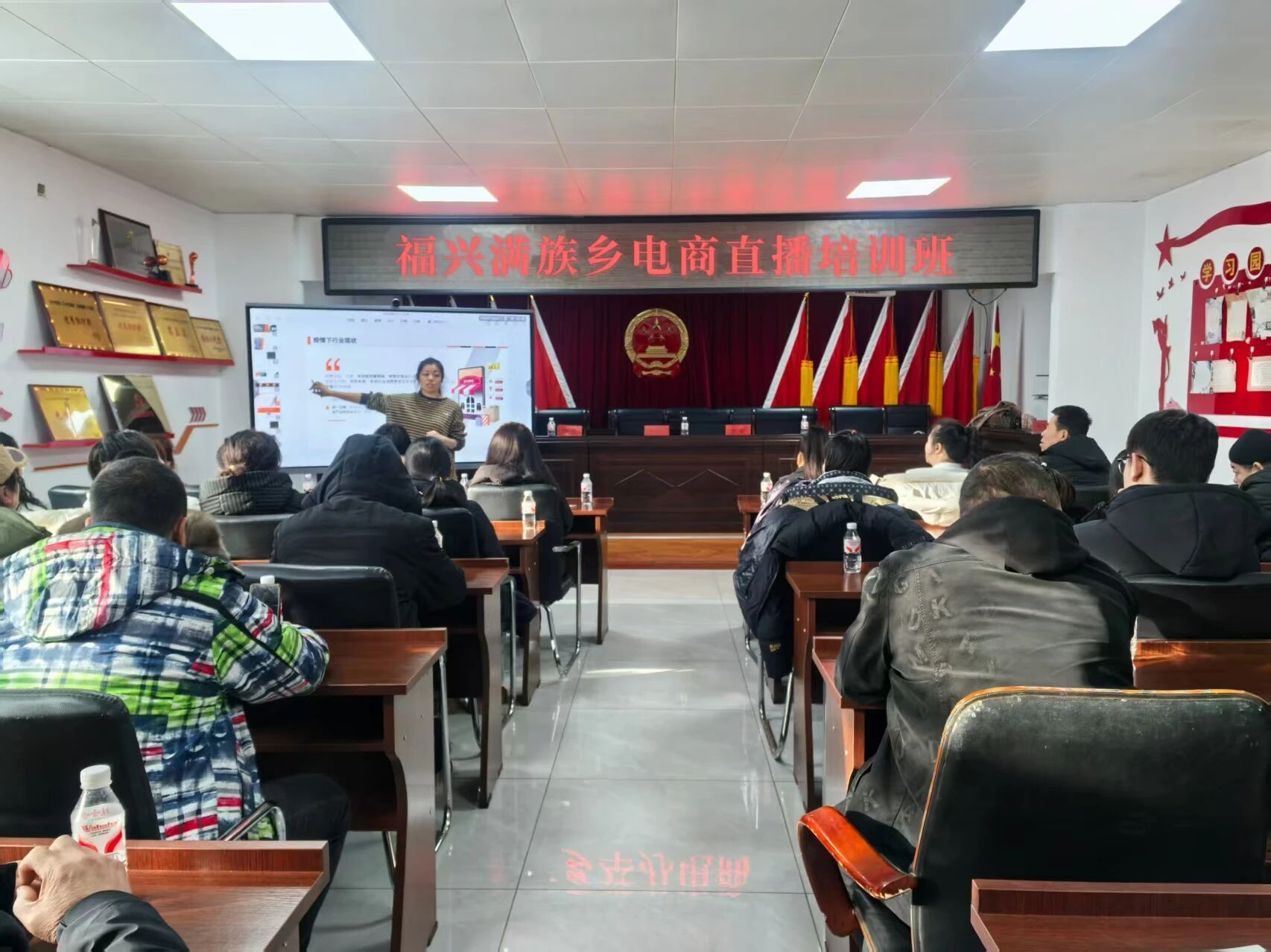1月17日,福兴满族乡举办电商直播培训班。邀请电商直播领域讲师“送课上门”,全乡各村种植养殖大户、返乡创业青年、村干部等加培参训,系统学习直播带货新技能。