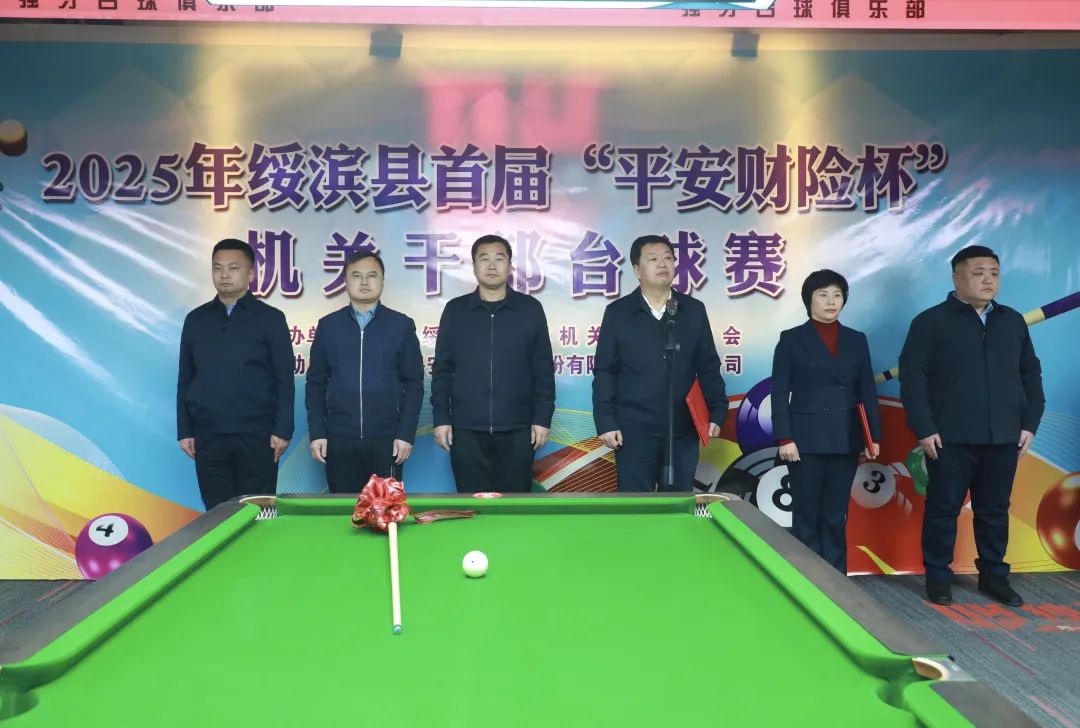 1月6日,绥滨县首届“平安财险杯”机关干部台球赛开赛。县委书记何佳,县领导张宏波、王岩、张静玉、于海峰参加开幕式。张宏波主持开幕式。