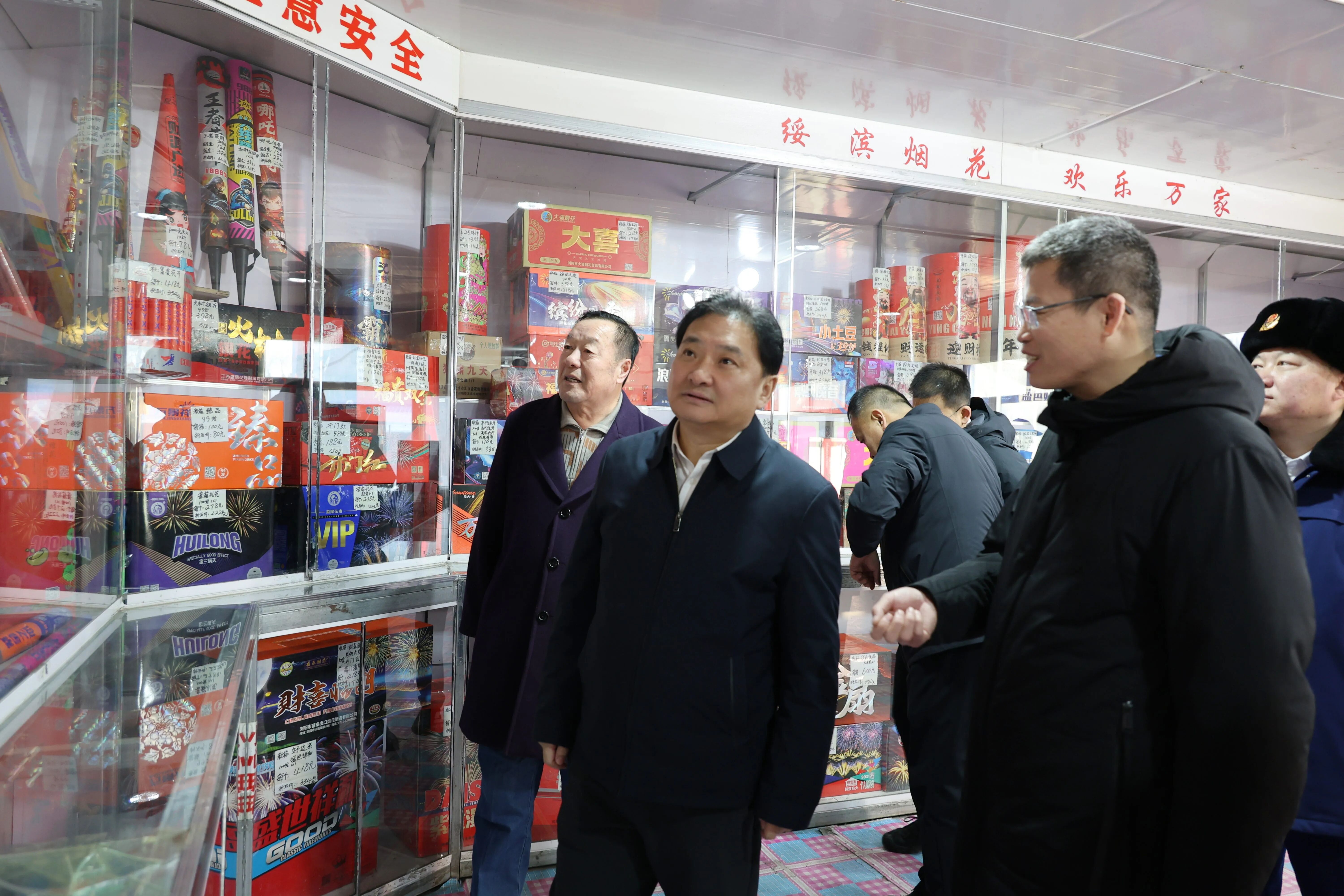 刘海龙一行先后前往国网绥滨县110千伏变电站、金阳小区、百川国际KTV、老胖串店、茂盛烟花爆竹销售中心、家家福超市,实地检查电力保供、小区安全管理、娱乐场所消防安全、餐饮食品安全、烟花爆竹经营安全、商贸流通安全等工作,详细了解各领域安全措施落实、隐患排查整治、应急值守等情况。