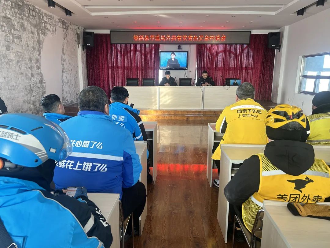 2月18日,县市监局召开外卖餐饮食品安全约谈会。部分商家、外卖配送人员参加会议。