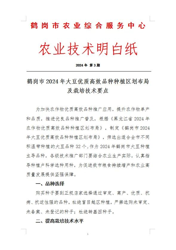 鹤岗市2024年大豆优质高效品种种植区划布局及栽培技术要点